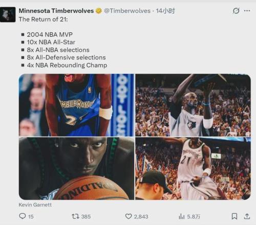 早在2022年3月,凱爾特人就為加內(nèi)特退役了5號(hào)球衣。森林狼的21號(hào)球衣,為何遲遲沒退?加內(nèi)特退役之前,跟當(dāng)時(shí)的森林狼老板格倫-泰勒發(fā)生矛盾,KG公開表示拒絕被森林狼退役球衣。今年6月份,森林狼正式易主,泰勒賣掉球隊(duì)。