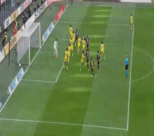上半場補時階段,莫德里奇主罰右側角球,拉比奧前點頭球擺渡,無人盯防的普利西奇推射,球擊中橫梁下沿之后反彈入網,1比0!